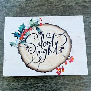 NWT “Silent Night” solid wood block Christmas holiday decor sign.