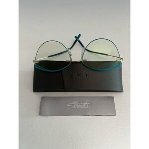Silhouette Eyeglasses. A luxurious high-end design for those who demand quality and the fine details. The semi oval shape exudes a distinguished touch of class. Color: blue and mat gold. Material: high tech titanium. Includes brochure and hard case. Made in Austria.