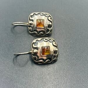 Silpada Sterling 925 Silver Square Bezel Scroll Amber Earrings W0911