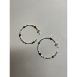 Silver Tone With Gold Tone Design Hoops Pierced Earrings