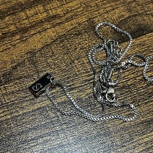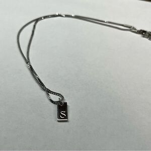 Silver plated Rectangular Tag letter “S” Engraving Pendant Necklace