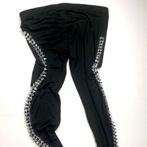 Silver Studded Black Leggings S/M Goth Clubwear Grunge Burlesque