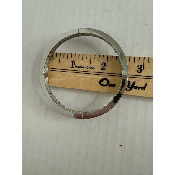 Silver-Tone Hinged Bangle Bracelet With Rhinestone Accents Party Rave Formal