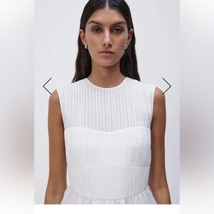 Simkhai Benton Tulle Plisse Midi Dress in White size 6 NWT