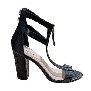 Simmi London Black Zip Up Detail Mock Croc Block Heel Sandals Size 7