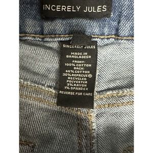 Step out in style with these Sincerely Jules jeans, perfect for any season. These juniors' size 3 pants feature a 26-inch waist and 29-inch inseam, with a mid-rise fit for added comfort. Made from a cotton blend denim fabric, these pants come in a beautiful blue color with light wash and distressed features.