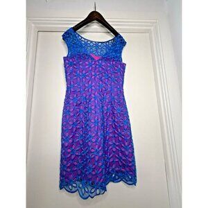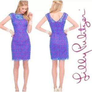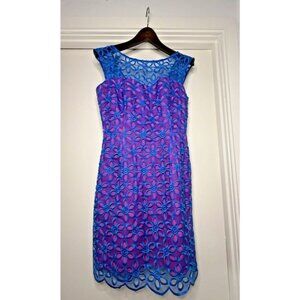 Size 6 Lilly Pulitzer Selna Royce Blue Pink Daisy Floral Eyelet Cocktail Dress
