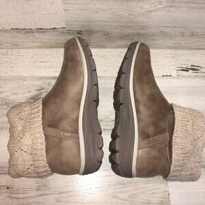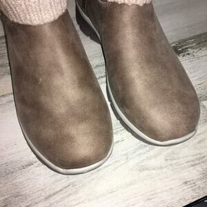 Chic Skechers ankle boots. Taupe suede with a warm knit cuff. Ideal for everyday comfort.
