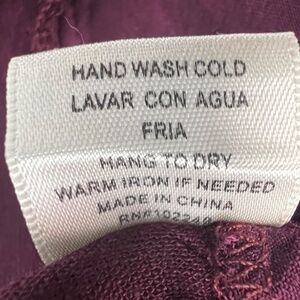 Skies are Blue women's top in dark burgundy. Round neck. 3/4 rolled sleeves. Eyelet detail. Keyhole in back. Heavy material. In good used condition. No stains, tears or holes.