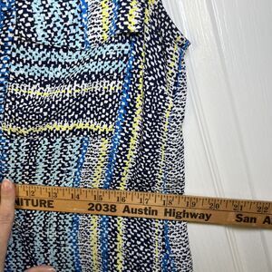 Skies Are Blue Sleeveless Shirt Dress Multicolor graphic designCovered buttons on the front. Pockets, and a drawstring Waist Size S