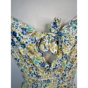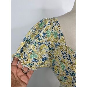 Sky & Sparrow Floral Print Sweetheart Neckline Ribbed Cap Sleeves Crop Top