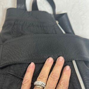 This black backpack combines a sleek design with practical functionality, featuring a vertical zipper for easy access. Its structured shape and durable material make it a versatile choice for everyday use. See all photos as they are part of description