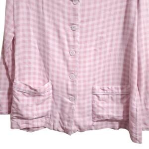 Sleeper pajama top, Sleeper Party Pajamas, pink gingham pajama shirt, Vichy check top, luxury sleepwear blouse, celebrity style pajamas, Sex and The City outfit, Carrie Bradshaw style, designer loungewear, statement pajama set top, brunch-to-bed pajama shirt