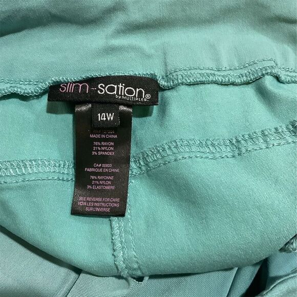 Slim-Sation by Multiples Women's Plus Size 14 Capri Pants Green Stretch Pockets