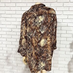 Stylish snakeskin print blouse. Features a button-up front. Perfect for casual or dressy occasions. Gently used.