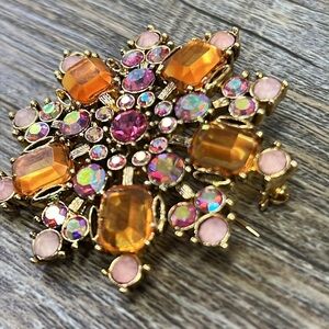 Snowflake Rhinestone Brooch Peach and Pink Aurora Borealis Gold Backing