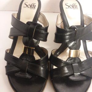 Sofft black leather wedge sandal with gold detail
