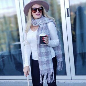 Soft textured oversized plaid print scarf