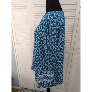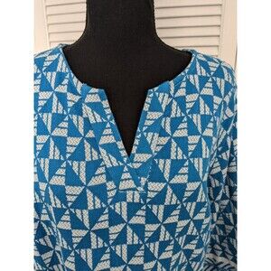 Elevate your wardrobe with this beautiful Soft Surroundings Narah Top. This medium weave blouse has a blue and white geometric print that will make you stand out in any occasion. The V-neckline and balloon sleeves add a touch of retro to the top, making it perfect for any vintage lovers out there.