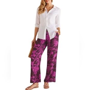Soft Surroundings Oceo Tropical Fuschia Gauze Wide Leg Pants and Top Set in pre-owned excellent conditions. Both Pants and blouse are size Large