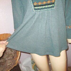 Soft Surroundings Tunic Top Size L Embroidered Waffle Knit Beaded Thermal