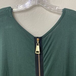 Soft Surroundings green sweater with back gold zipper size small. Good condition.Length is 30” in front and 33” in back.Chest is 20”