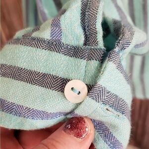 Very good condition, no stains, holes or odors. Missing 2 beads-hard to notice- see pics. Has front pockets.