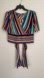 Soho New York & Company Jeans Rainbow Striped Tie Faux Wrap Cut Out Cropped Top Blouse