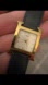 Elegant Hermès watch with a gold square face. Black leather strap adds sophistication. Retails for $3500