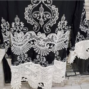 Solitaire Black And Cream Crocheted Lace Kimono Jacket Plus Size 2X New