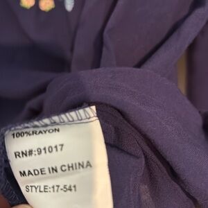 Solitaire Blue 3/4 Sleeve Blouse with Embroidered Floral Design - Vneck - XL