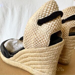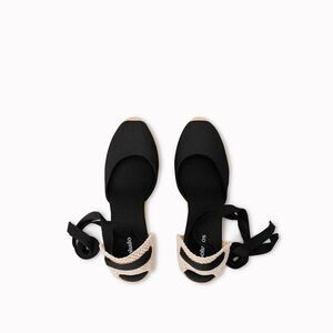 Soludos Black Marseille Espadrilles ankle tie wedges US women’s 8