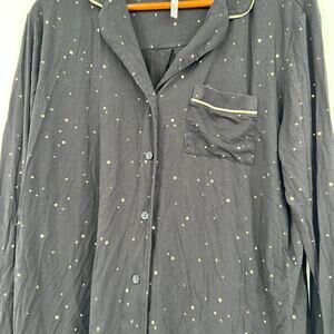Soma Cool Nights Dazzling Dot Black Pajama Shirt button front notch collar sz XL