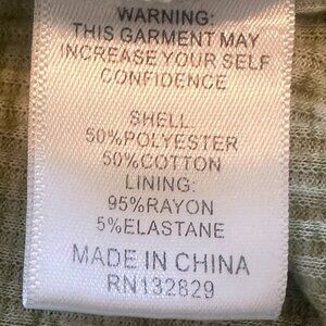 Shell: 50% polyester/50% cotton - Lining: 95% rayon/5% elastane