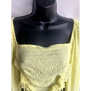 Sophie Rue Ruched Yellow Cottagecore Prairie Top Long Sleeve Size XL Romantic