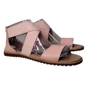 Sorel Ella Pink Leather Canvas Cross Strappy Slip On Flat Sandals Sz 8.5