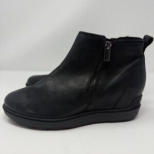 Sorel Evie II Zip Waterproof Leather Ankle Bootie Womens 9 Black Wedges City NWT