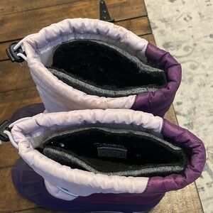 Sorel Insulated Winter Boots with Rubber Sole women’s size 6. In great condition with little signs of wear. Has some slight discoloration at the top near the whole. Has a tie at the front to tighten the top of boot. Great boots for the snow, skiing, winter months, etc.