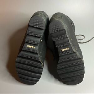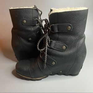Sorel Joan of Arctic Mid Lace Up Wedge Black Leather Shearling Lux 9