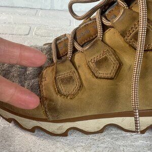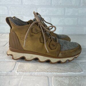Sorel Kinetic Caribou Snow Boots Womens 7.5 Light Brown Leather Gray Waterproof