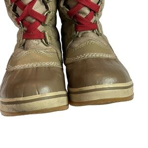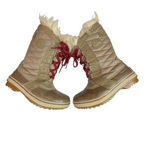 🎉Sorel Tofino II kids Tall Faux Fur Boots Winter Outdoors Tan Red Laces size 1