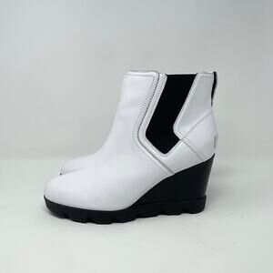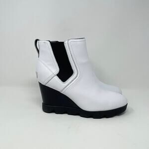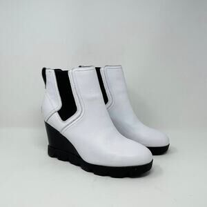 Sorel Uptown Chelsea Womens 9 White Leather w/Black Wedge Ankle Boot Snow