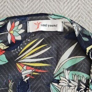 Wrap yourself in the laid-back elegance of the Soul Young Navy Blue Floral Shawl. A versatile piece that elevates any casual outfit, this one-size blouse boasts a relaxed fit, making it a comfortable choice for all-day wear. The sheer chiffon fabric, adorned with a delicate floral pattern, exudes a breezy bohemian vibe, perfect for those seeking a touch of effortless style.
