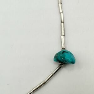 Southwestern Liquid Silver Choker Turquoise Chunky Stone Necklace 15.5" long