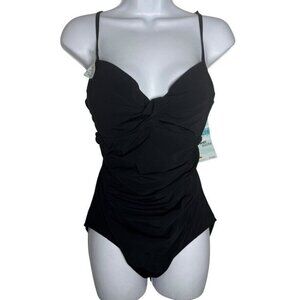 Spanx Love Your Assets Black One Piece SwimSuit Ruched Underwire Push Up size XL