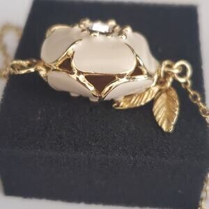 Spartina 449 necklace has three dimensional cream colored enamel flowers with rhinestone centers. 39 inches long with a lobster clasp. Excellent condition. Comes in a Spartina Mermaid pouch.