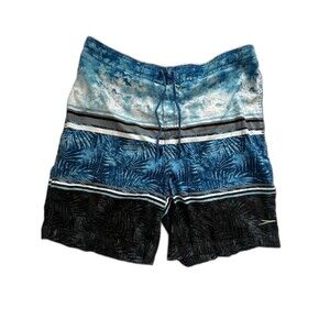 Speedo Men’s Blue Tropical Striped Mesh Lined Drawstring Swim Trunks Size 2XL