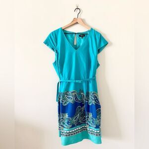 Spense Women Cotton Blend A Line Dress in Turquoise with Paisley Detail - 18W