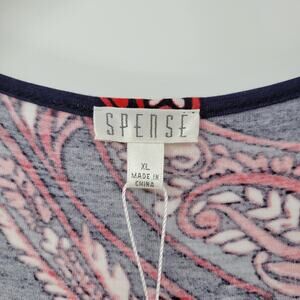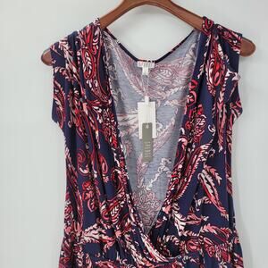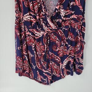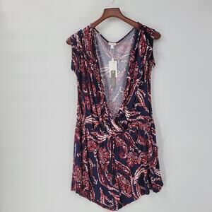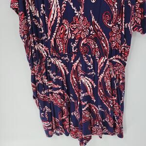 Spense Womens Romper XL Blue Red Paisley Cold Shoulder Boho Pullover Stretch