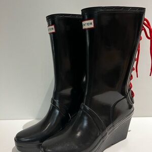 These boots are more than useful, they are cool to wear, with wedge and red shoe laces on the back make this Hunter boots unique.